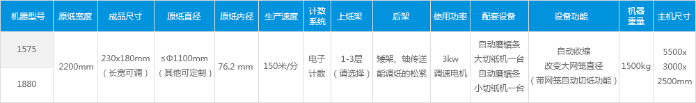 網(wǎng)籠式方塊紙復(fù)卷機主要是指網(wǎng)籠式復(fù)卷機、帶面板切紙鋸和帶鋸切紙機,主要用于方塊紙的復(fù)卷、切條然后切成方塊直至生產(chǎn)出一張一張的方塊衛(wèi)生紙。