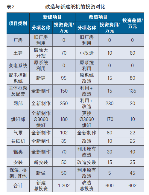 改造紙機首先考慮是否具備改造條件, 從投入、 產出和安全方面進行分析。 投資回收期在1~1.5年, 都可以進行改造。