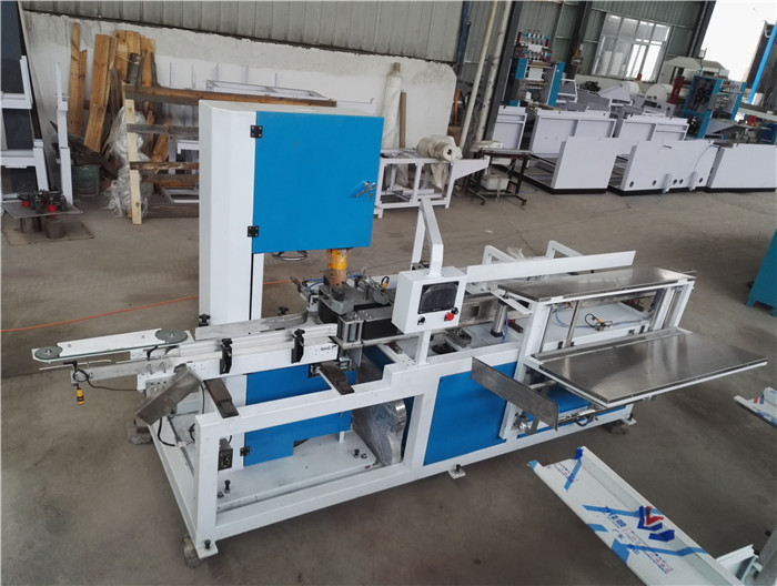 衛(wèi)生紙加工設(shè)備是以大軸紙為原材料,衛(wèi)生紙復(fù)卷機(jī)進(jìn)行自動(dòng)上料,復(fù)卷,打孔,修邊,噴膠后復(fù)卷成卷筒長(zhǎng)條狀,帶鋸切紙機(jī)分切成自己需求長(zhǎng)短,人工裝袋之后經(jīng)過(guò)水冷式封口機(jī)進(jìn)行封口之后就是我們市面上購(gòu)買的一提一提的衛(wèi)生紙。